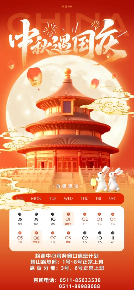 检测中心2025年国庆、中秋节服务窗口值班计划