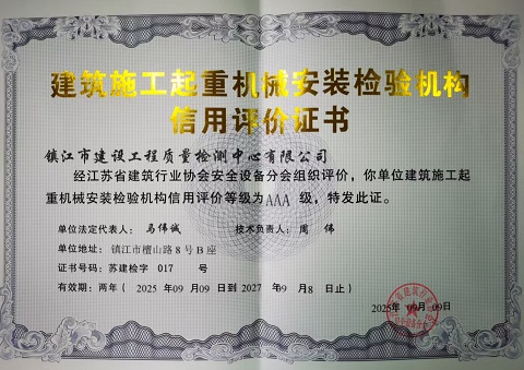 检测中心在9月开展的江苏省建筑施工起重机械检验机构信用评价中,中心凭借过硬的技术实力、规范的服务流程与严谨的质量管控,以优异考核分数顺利通过评审,成功斩获“AAA”级信用评价等级。作为全省建筑施工起重机械检验领域最具公信力的行业评价,该信用评价每两年组织一次,评价体系覆盖检验技术水平、质量控制体系、服务合规性、信用档案记录、安全生产管理等方面,其结果是衡量机构专业实力与行业信誉的重要标杆。